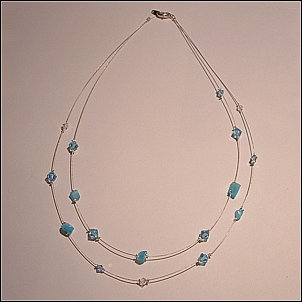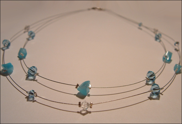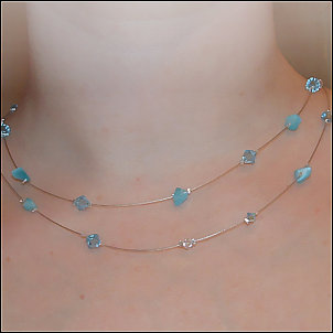 Composition : cristal Swarovski© et chips oeil-de-chat aquamarine montés sur fil câblé argenté