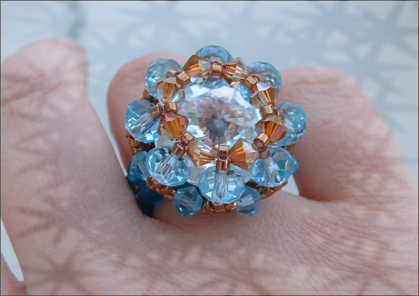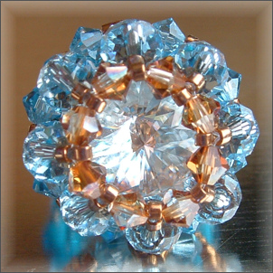 Composition : cristal Swarovski© dont 1 rivoli rond, cristal de Bohême, rocailles Delica