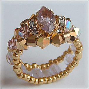 Composition : 1 améthyste véritable sertie, cristal Swarovski© dont 8 toupies et 4 rocailles plaquées or 24k, cristal de Bohême, rondelles strass, rocailles dorées