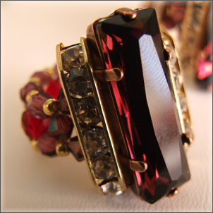 Composition : cristal Swarovski©, cristal de Bohême, rocailles dorées
