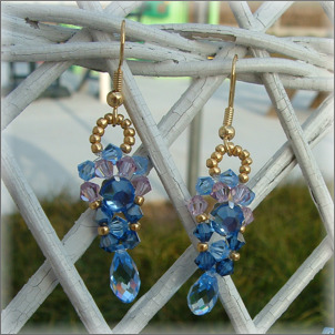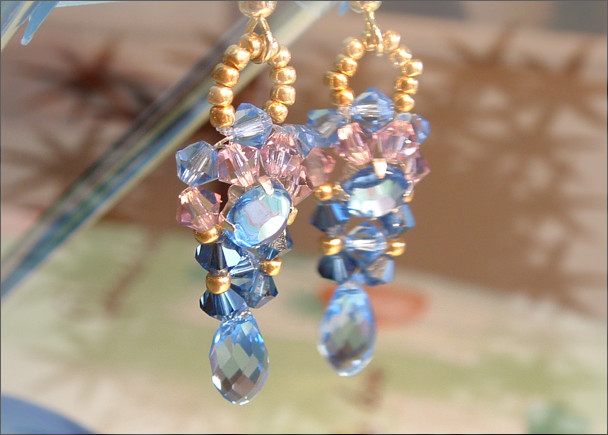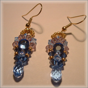Composition : cristal Swarovski© dont 2 briolettes et 2 strass, cristal de Bohême, rocailles dorées