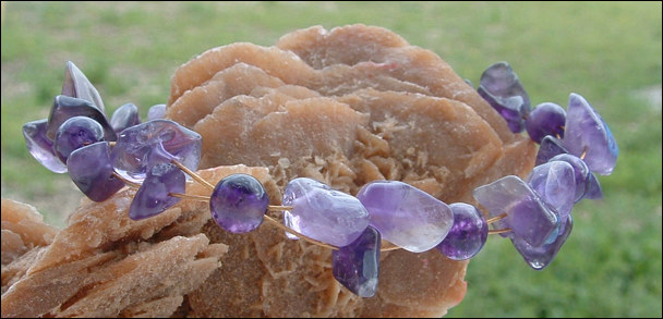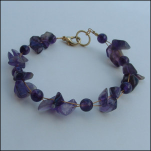 Composition : perles rondes et chips en améthyste véritable, apprêts dorés