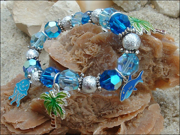 Bracelet "Mers du Sud" (réalisé pour le concours de l'île aux Perles "le ciel, le soleil et la mer")