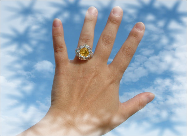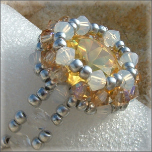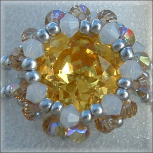 Composition : cristal Swarovski© dont un cabochon Light Topaz de 12 mm (au centre), cristal de Bohême, mini rocailles