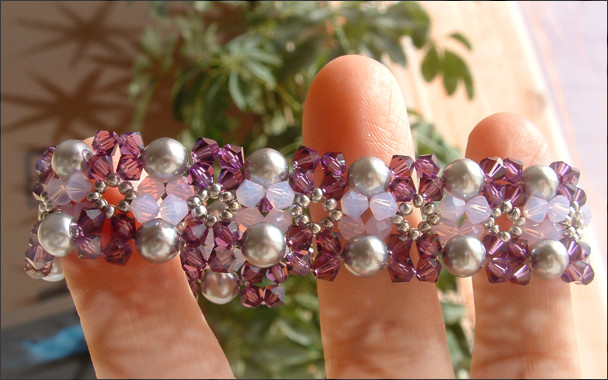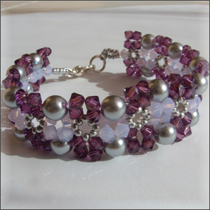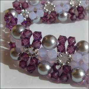 Composition : cristal Swarovski (amethyst et violet opal), boules et mini rocailles argentées