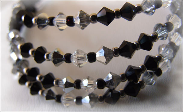 Composition : cristal Swarovski© et rocailles sur fil mémoire plaqué argent