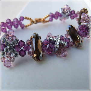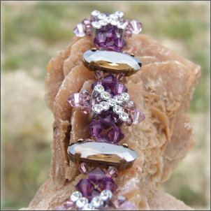 Composition : cristal Swarovski©, rocailles et apprêt dorés