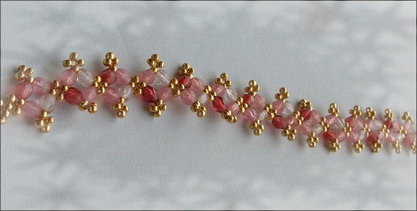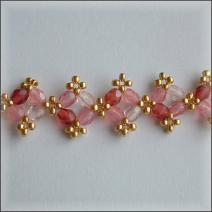 Composition : cristal de Bohême (fuschia, light rose opal, light rosaline), mini rocailles dorées
