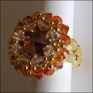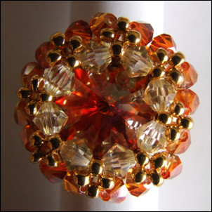 Composition : cristal Swarovski© (Chili Pepper, Champagne), cristal de Bohême, mini rocailles dorées