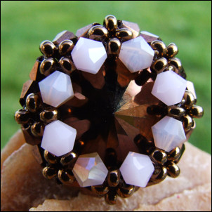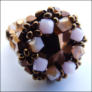 Composition : cristal Swarovski© (dont 1 rivoli Vintage Chocolat), couleurs chocolat et rose alabaster silky, cristal de Bohême, mini rocailles bronze