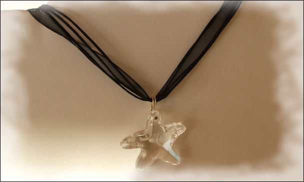 Composition : cristal Swarovski©, tour de cou coton et organza, apprêts argentés