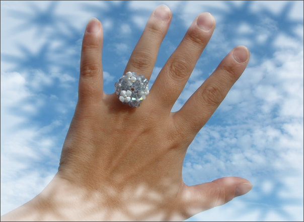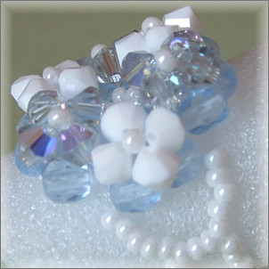 Composition : cristal Swarovski©, cristal de Bohême, mini rocailles