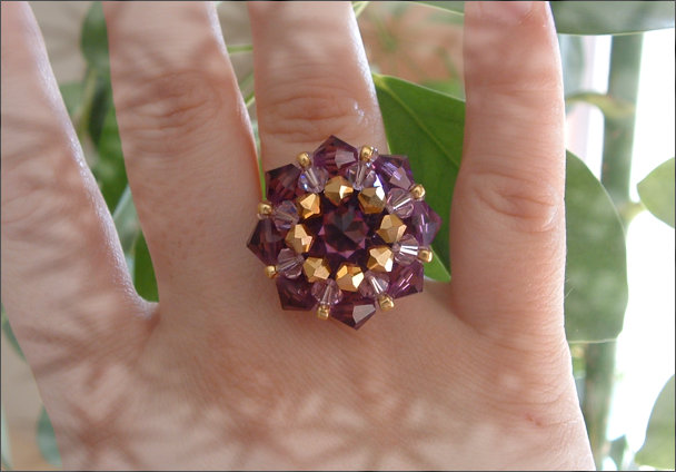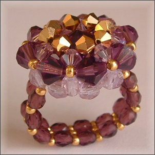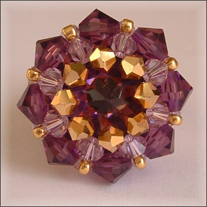 Composition : cristal Swarovski© dont 1 cabochon Vintage Flatback "Amethyst" (très rare), toupies plaquées or, cristal de Bohême, rocailles dorées