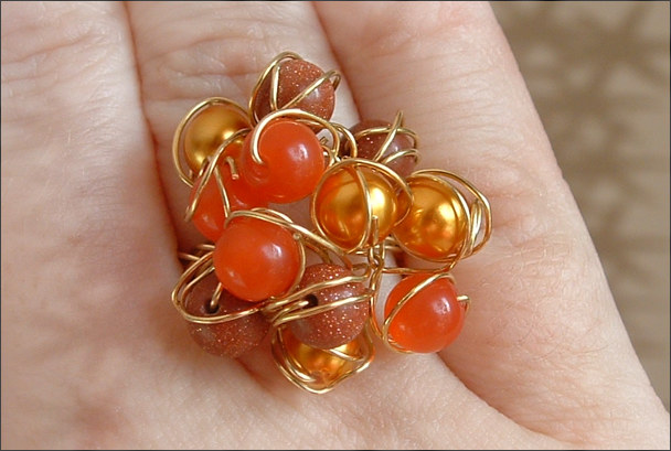 Composition : nacrées en cristal Swarovski©, yeux-de-chat, pierres de soleil, fil cuivre