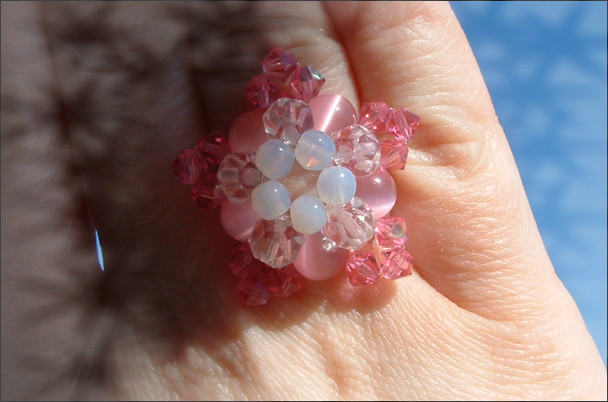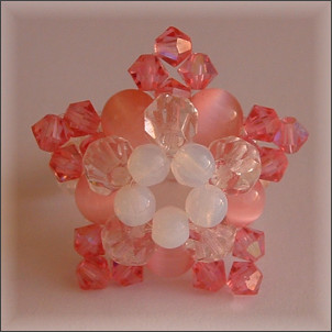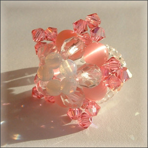 Composition : cristal Swarovski©, cristal de Bohême, yeux de chat, perles nacrées