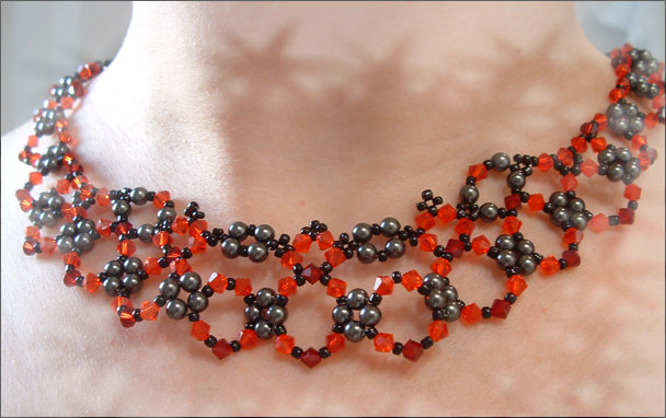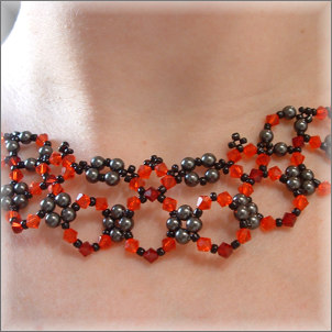 Composition : cristal Swarovski©, perles nacrées, cristal de Bohême, rocailles