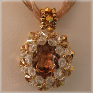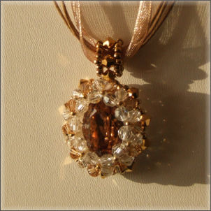 Composition : cristal Swarovski© (dont toupies plaquées or), cristal de Bohême et rocailles plaquées or