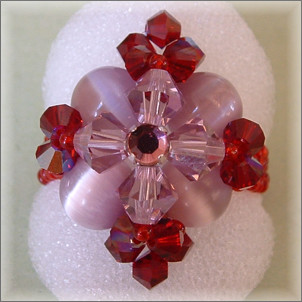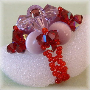 Composition : cristal Swarovski©, yeux de chat, strass, mini rocailles