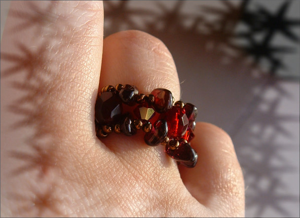 Composition : cristal Swarovski©, grenat véritable, cristal de Bohême, rocailles bronze