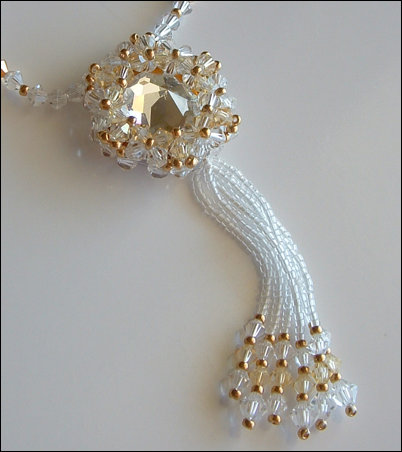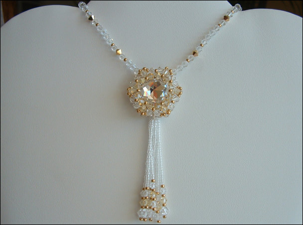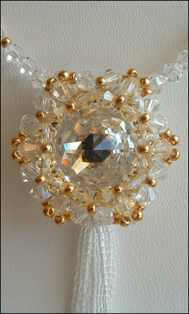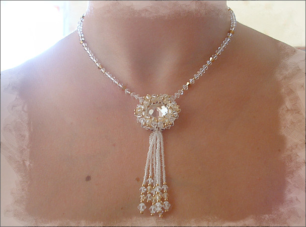 Composition : cristal Swarovski© dont 1 cabochon Vintage, rocailles en verre et plaqué or