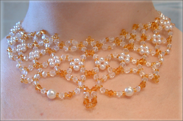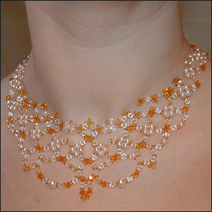 Composition : cristal Swarovski©, perles nacrées, cristal de Bohême, rocailles