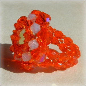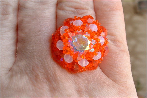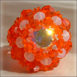 Composition : cristal Swarovski© (hyacinth et white opal) dont un cabochon, cristal de Bohême, mini rocailles
