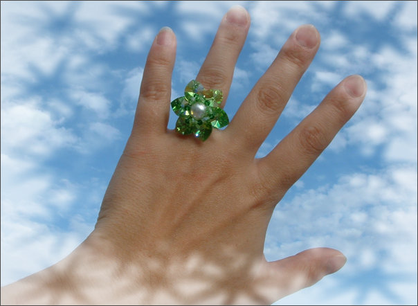 Composition : cristal Swarovski©, perle nacrée, rocailles