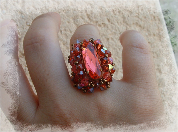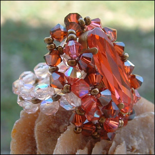 Composition : cristal Swarovski© dont 1 marquise sertie, cristal de Bohême, Delicas bronze