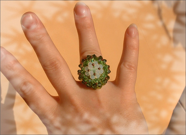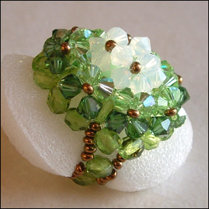 Composition : cristal Swarovski©, oeil de chat, cristal de Bohême, rocailles bronze