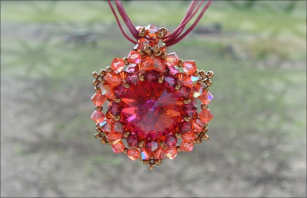 Composition : cristal Swarovski© dont 1 rivoli Vintage (Années 50/70) 18 mm couleur Cathedral, cristal de Bohême, rocailles bronze