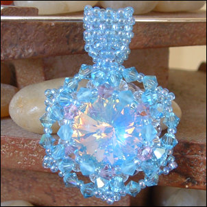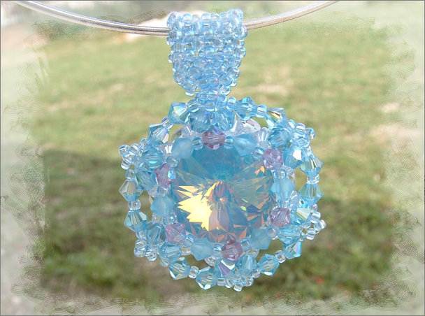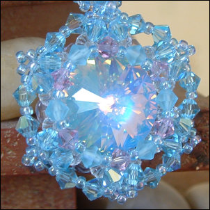 Composition : cristal Swarovski© dont 1 fabuleux et extrêmement rare rivoli Ultra-Light Blue (merci Jackie !), cristal de Bohême, mini rocailles