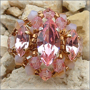 Composition : cristal Swarovski© dont 3 navettes serties, cristal de Bohême, Delicas bronze