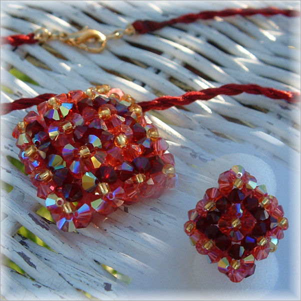 Composition : cristal Swarovski©, cristal de Bohême, rocailles