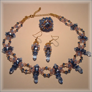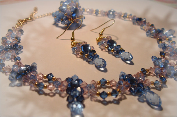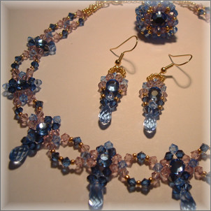 Composition : cristal Swarovski© dont 7 briolettes et 12 strass, cristal de Bohême, rocailles dorées
