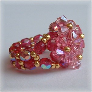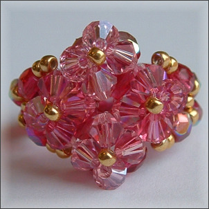 Composition : cristal Swarovski© (rose AB et light rose), cristal de Bohême (fuschia), rocailles dorées