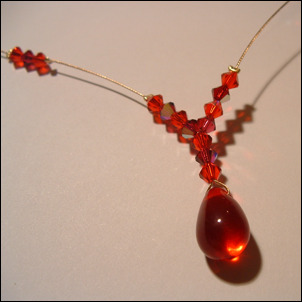 Composition : cristal Swarovski© et larme de verre montés sur fil câblé doré