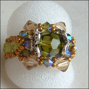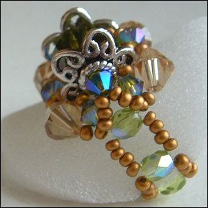 Composition : cristal Swarovski©, métal argenté, cristal de Bohême, rocailles dorées mates