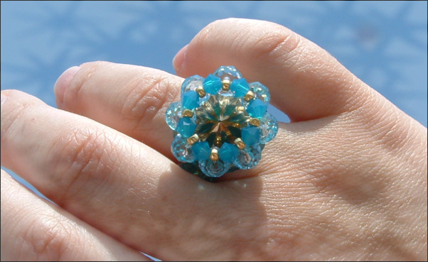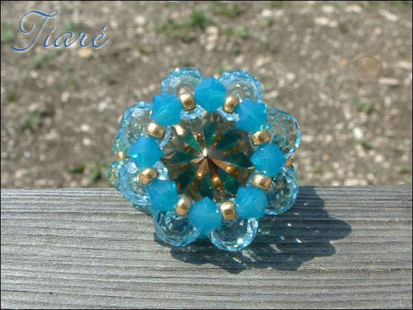Composition : cristal Swarovski© dont 1 rivoli Vintage Plaqué Or 24k, cristal de Bohême, rocailles dorées