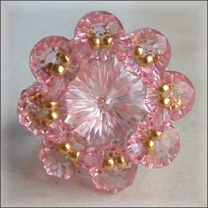 Composition : cristal Swarovski© dont 1 rivoli, cristal de Bohême, rocailles dorées