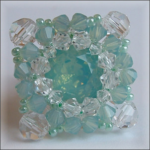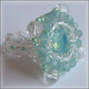 Composition : cristal Swarovski© dont un cabochon, cristal de Bohême, rocailles nacrées