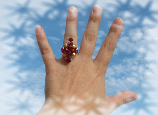 Composition : cristal Swarovski©, cristal de Bohême, perles givrées, mini rocailles