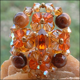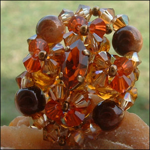 Composition : cristal Swarovski© dont 1 navette Vintage "Madeira Topaz", cristal de Bohême, perles miracle, mini-rocailles bronze