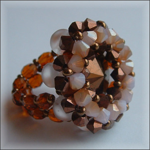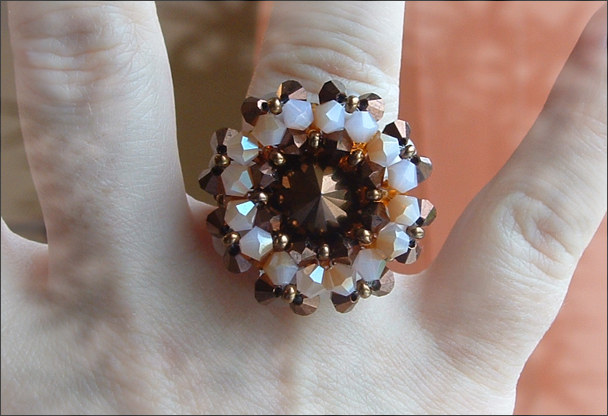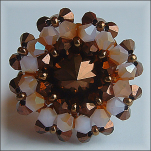 Composition : 1 cabochon en cristal Swarovski© Vintage "chocolat" (très rare, date de 1960 !!) au centre, cristal Preciosa (chocolat et silky), cristal de Bohême, perles en verre dépoli, mini-rocailles